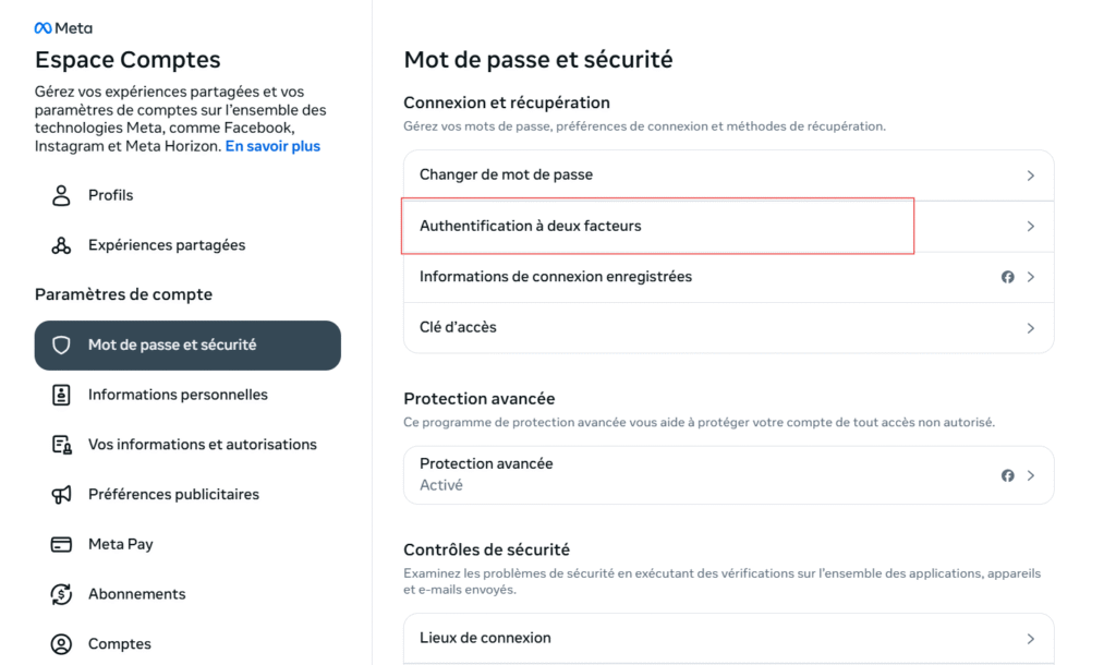 1️⃣ Allez dans les paramètres de votre compte Facebook connexion.