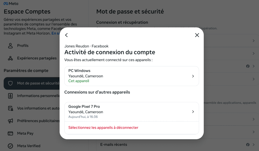 - Déconnectez tout appareil suspect ou ancien que vous n’utilisez plus.